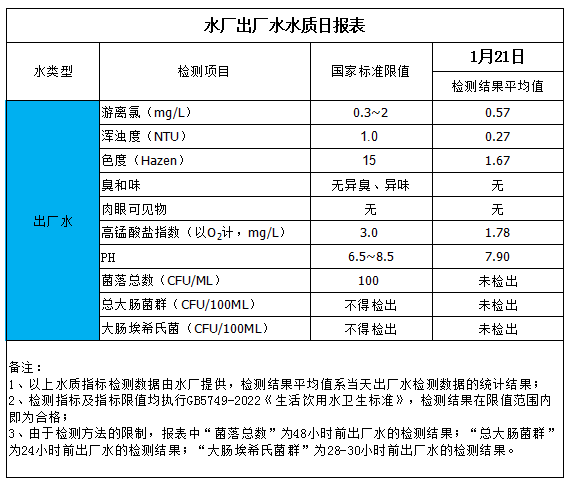 出廠水水質(zhì)日?qǐng)?bào)表(2026-1-21)