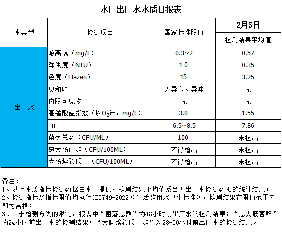 水廠出廠水水質(zhì)日報表(2025-2-5)