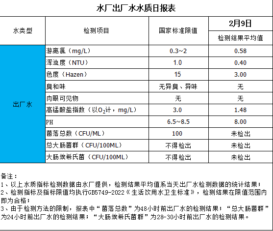 水廠出廠水水質(zhì)日報(bào)表(2025-2-9)