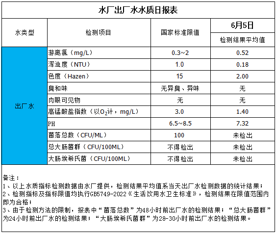 水廠出廠水水質(zhì)日?qǐng)?bào)表(2025-6-5)