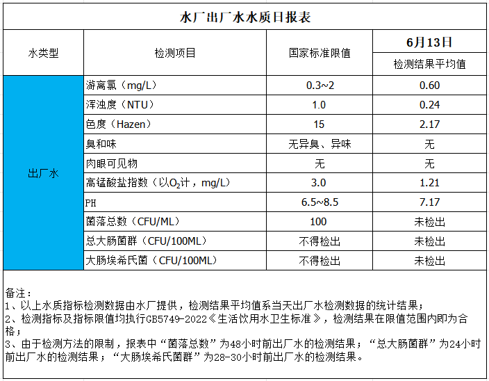 水廠出廠水水質(zhì)日報(bào)表(2025-6-13)