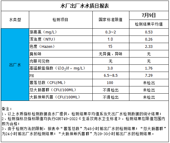 水廠出廠水水質(zhì)日報表(2025-7-9)