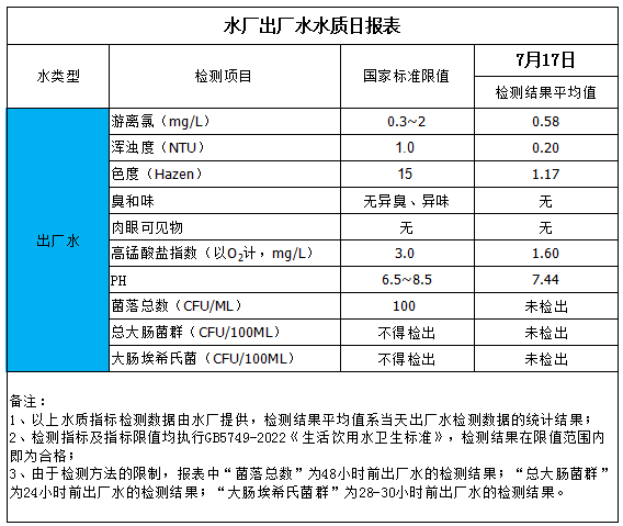 水廠出廠水水質(zhì)日報(bào)表(2025-7-17)
