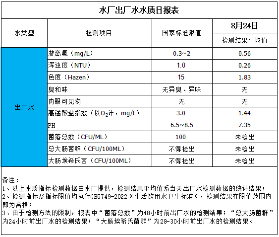 水廠出廠水水質(zhì)日報(bào)表(2025-8-24)