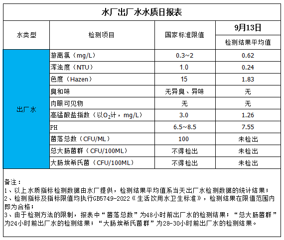 水廠出廠水水質(zhì)日報表(2025-9-13)