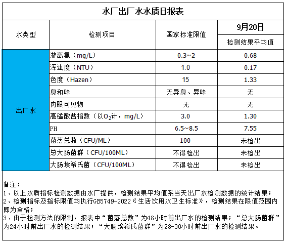 水廠出廠水水質(zhì)日報(bào)表(2025-9-20)