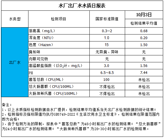 水廠出廠水水質(zhì)日報(bào)表(2025-10-3)