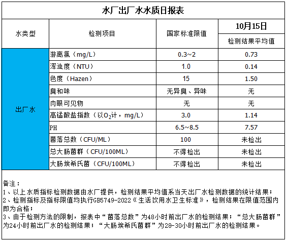 水廠出廠水水質(zhì)日?qǐng)?bào)表(2025-10-15)