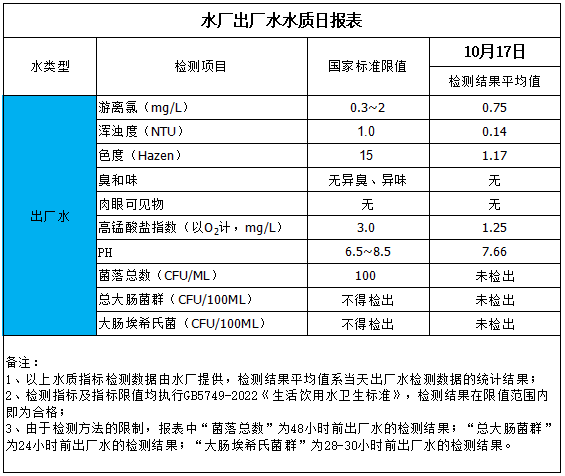 水廠出廠水水質(zhì)日?qǐng)?bào)表(2025-10-17)
