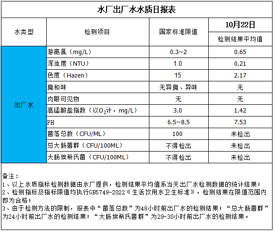 水廠出廠水水質(zhì)日?qǐng)?bào)表(2025-10-22)
