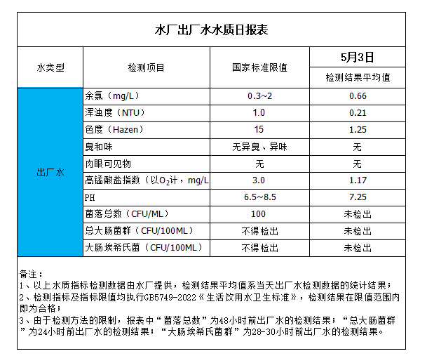 水廠出廠水水質(zhì)日?qǐng)?bào)表(2023-5-3)