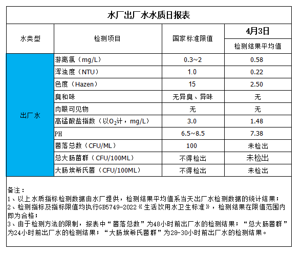 水廠出廠水水質(zhì)日報表(2024-4-3)