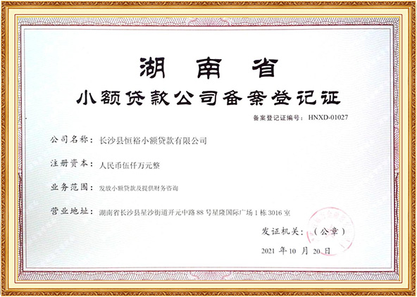 長沙縣恒裕小額貸款有限公司于2012年3月29日設立,經營范圍主要為家電批發(fā)零售流動貸款;國家政策允許的農村家電消費貸款;“三農”和中小企業(yè)需求的金融業(yè)務;為中小企業(yè)發(fā)展、管理、財務等咨詢業(yè)務及其他經批準的業(yè)務。多年來,一直