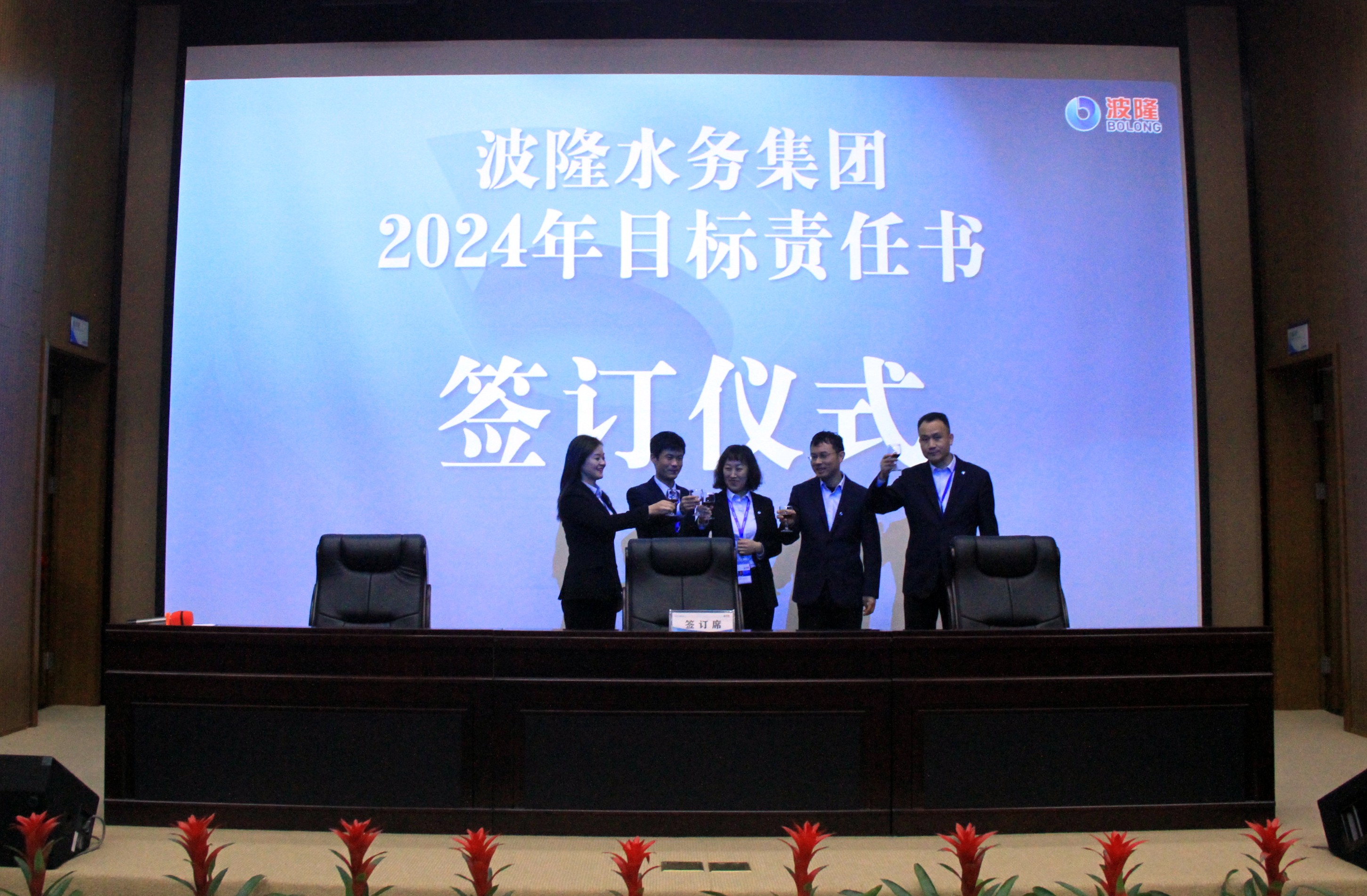 接著,波隆水務(wù)集團(tuán)開展2024年目標(biāo)責(zé)任書簽訂儀式。目標(biāo)已定,旌旗已展,簽下的名字也意味著沉甸甸的責(zé)任與擔(dān)當(dāng),每一位波隆人明確目標(biāo),凝聚信心、勇氣和力量,以奮力登高的姿態(tài)穩(wěn)步前行,全力以赴,開創(chuàng)波隆高效率、高質(zhì)量發(fā)展的新局面。